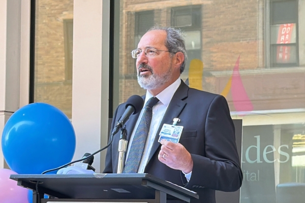瑪摩利醫療中心兒科部門負責人阿夫納(Dr. Jeffrey Avner)致詞。(黃小堂/大紀元)