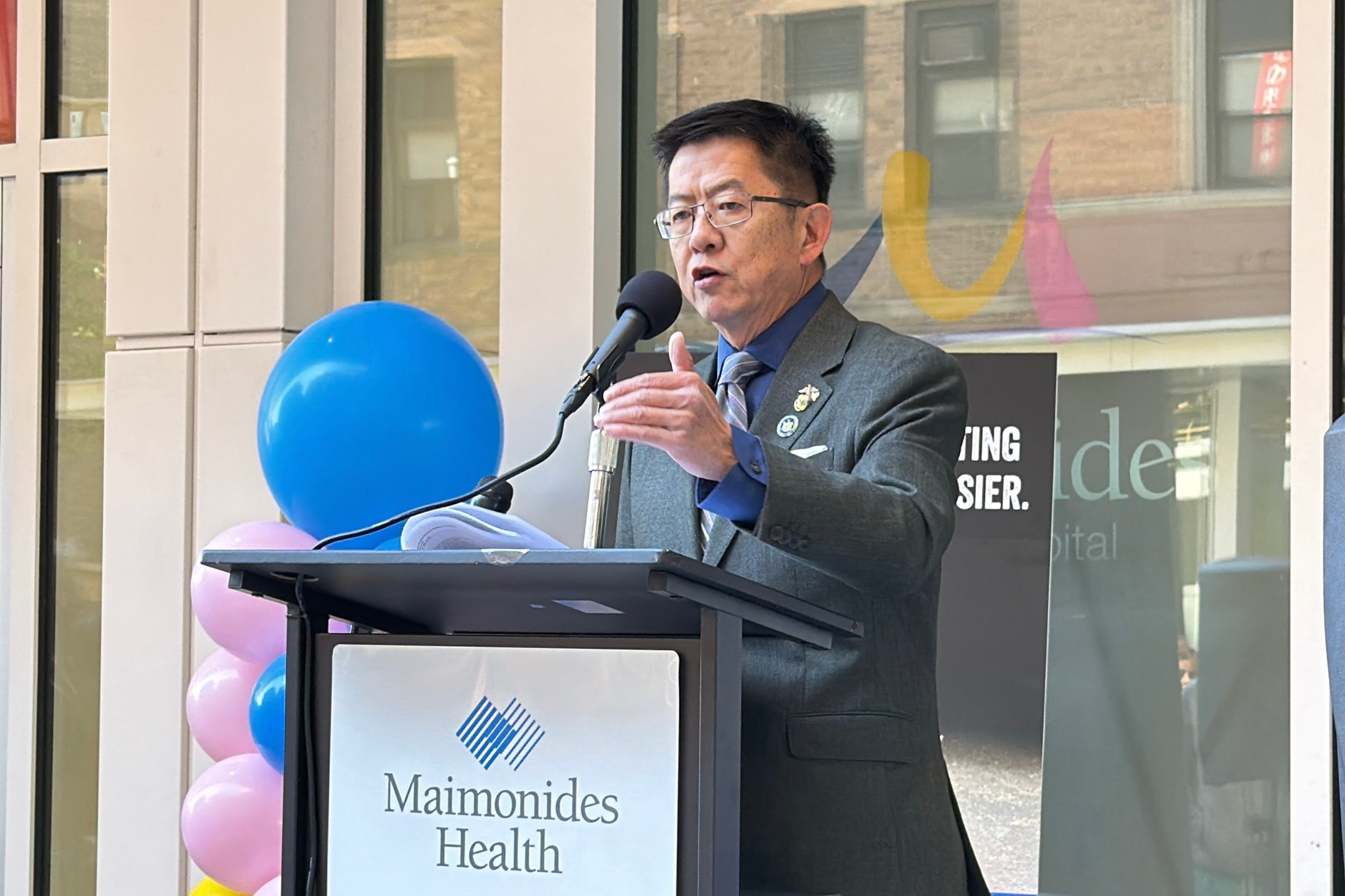 瑪摩利醫療中心兒童急診醫學主任阿羅約(Alexander Arroyo, MD)致詞。(黃小堂/大紀元)