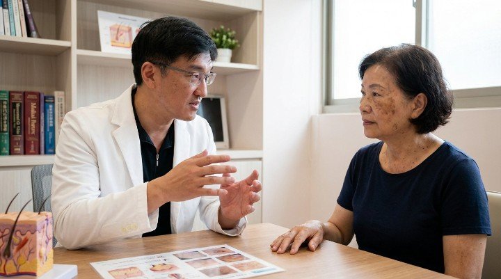• 外用藥膏:醫師處方的三合一藥膏或是對苯二酚、熊果素等成分,能輔助淡化色素。重點是 「醫師監控」 ,我們會根據皮膚反應調整用量與頻率,避免副作用。